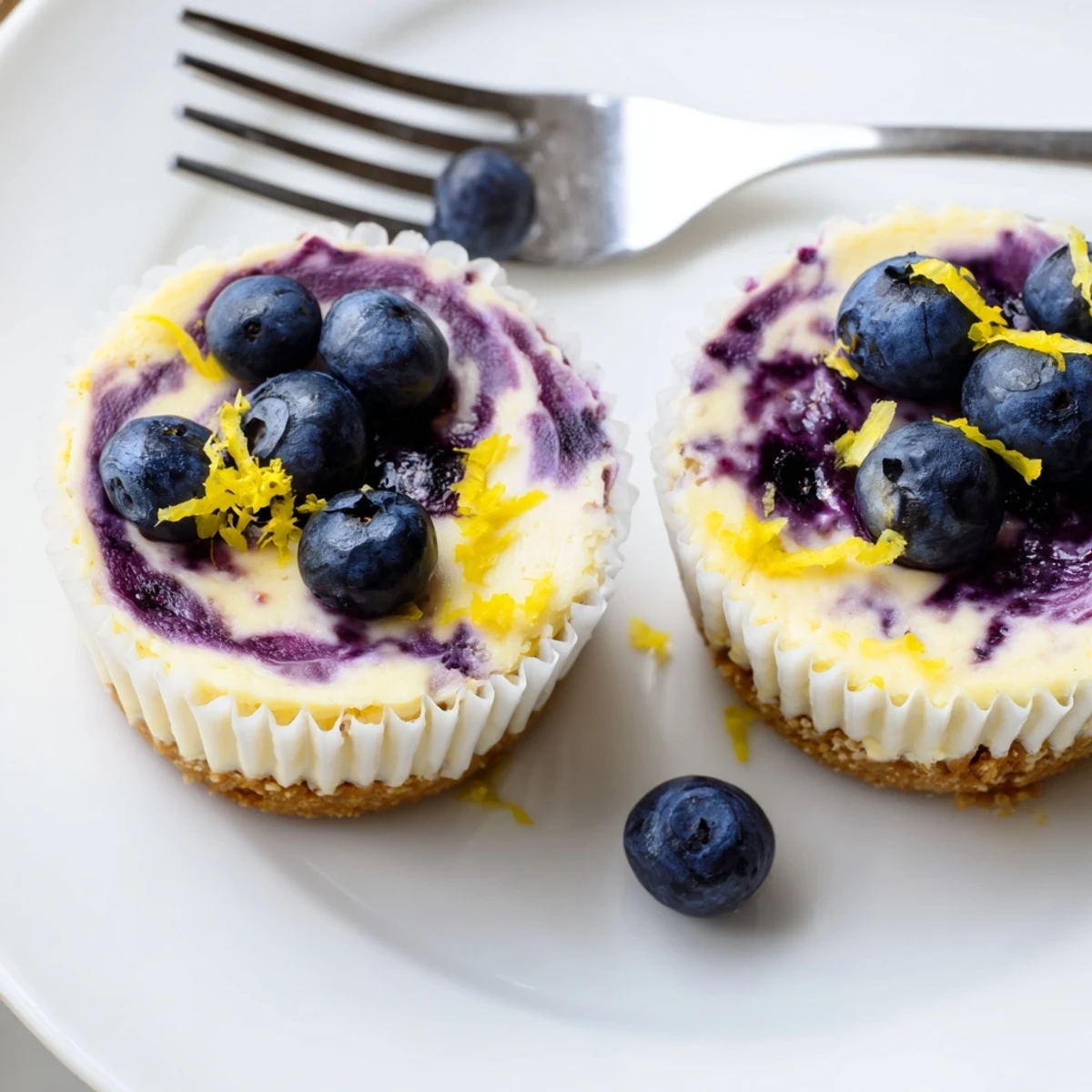 The individual portions make them ideal for entertaining—no slicing required. Guests can easily grab and enjoy while mingling. The lemon adds refreshing acidity that cuts through the rich, creamy filling, while blueberries provide natural sweetness and beautiful purple streaks.
